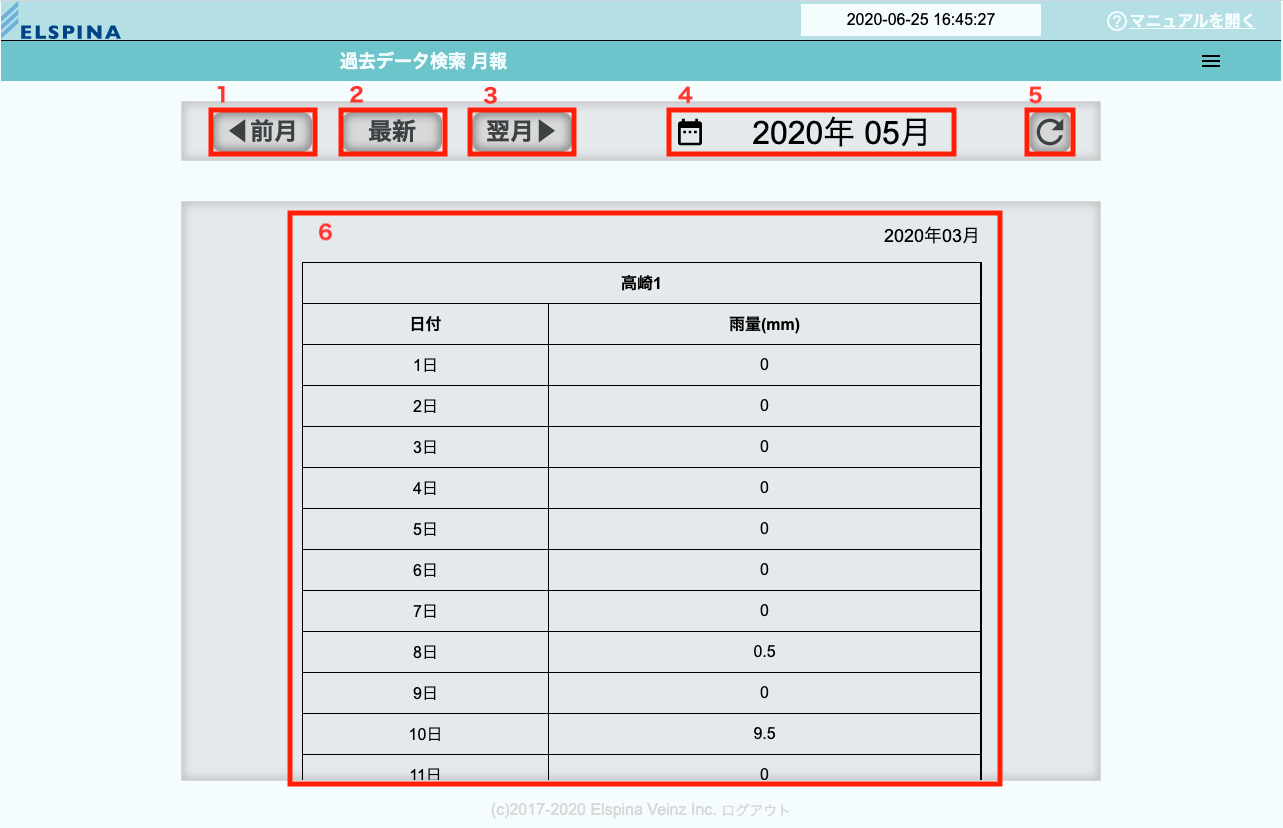 過去の1ヶ月の1日ごとの雨量の値を検索する場合に利用します.